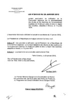 Loi N° 2012-05 du 26 janvier 2012 portant autorisation de ratification de la Convention Internationale sur la reconnaissance des études, des diplômes et des grades de l’enseignement supérieur dans les Etats Arabes, adoptée à Paris, le 22 décembre 1978. 26 janvier 2012