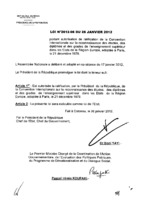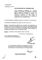 Loi N° 2012-01 du 19 janvier 2012 portant autorisation de ratification de la Charte africaine de la statistique, adoptée à Addis-Abeba (Ethiopie), le 04 février 2009. 19 janvier 2012