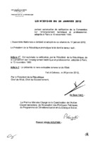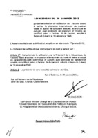 Loi N° 2012-10 du 26 janvier 2012 portant autorisation de ratification de l’Accord visant à faciliter la circulation internationale du matériel visuel et auditif de caractère éducatif, scientifique et culturel, avec protocole de signature et modèle de certificat prévu à l’article IV de l’accord, adopté à Beyrouth (Liban), le 10 décembre 1948. 26 janvier 2012