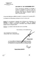 Loi N° 2011-32 du 18 novembre 2011 portant autorisation d’adhésion à la convention du 28 septembre 1954 relative au statut des apatrides et de la convention du 30 août 1961 sur la réduction des cas d’apatridie. 18 novembre 2011 -