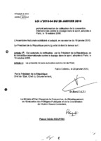 Loi N° 2010-04 du 26 janvier 2010 portant autorisation de ratification de la convention internationale contre le dopage dans le sport, adoptée à Paris le 19 octobre 2005 26 janvier 2010 -