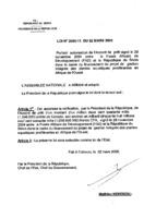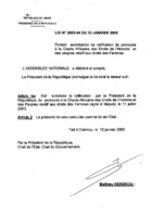 Loi n° 2005-04 du 12 janvier 2005 portant autorisation de ratification du protocole à la Charte Africaine des Droits de l’Homme et des peuples relatif aux droits des femmes. 12 janvier 2005