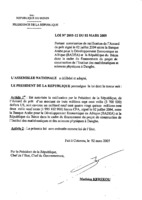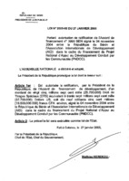 Loi N° 2005-08 du 27 janvier 2005 portant autorisation de ratification de l’accord de financement n° 3990 BEN signé le 04 novembre 2004 entre l’Association Internationale de Développement (AID) et la République du Bénin dans le cadre du financement du projet national d’appui au développement conduit par les communautés (PNDCC). 27 janvier 2005 -