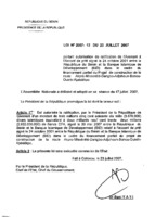 Loi N° 2007-09 du 5 juillet 2007 portant autorisation de ratification du protocole additionnel modifiant et complétant les dispositions de l’article 7 du protocole A/P1/5/79 sur la libre circulation des personnes, le droit de résidence et d’établissement. 5 juillet 2007 -
