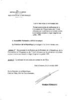 Loi n° 2003-18 du 22 octobre 2003 portant autorisation de ratification de la Convention de l’Organisation de l’Unité Africaine sur la prévention et la lutte contre le terrorisme adoptée en juillet 1999 à Alger (Algérie). 22 octobre 2003 -