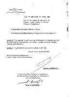 Loi n° 2002-01 du 12 février 2002 portant fixation du délai au terme duquel le Président de la République ne peut plus prendre des mesures exceptionnelles. 12 février 2002 -