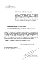 Loi n° 2002-02 du 29 avril 2002 portant autorisation de ratification de l’accord portant création de l’Institut africain de réadaptation. 29 avril 2002 -