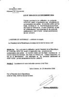 Loi n° 2004-22 du 05 août 2004 portant autorisation de ratification de la convention des Nations Unies contre la corruption adoptée par l’Assemblée générale des Nations Unies le 31 octobre 2003. 05 août 2004 -
