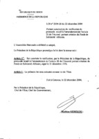Loi n° 2004-26 du 22 décembre 2004 portant autorisation de ratification du protocole relatif à l’amendement de l’article 20 de l’Accord portant création du Fonds de Solidarité Africain. 22 décembre 2004 -