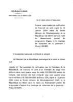 Loi n° 2004-15 du 6 juillet 2004 portant autorisation de ratification de l’accord de crédit de développement signé le 15 avril 2004 entre l'Association internationale de développement (AID) et la République du Bénin dans le cadre du financement partiel du Programme d’Appui à la Réduction de la Pauvreté. 6 juillet 2004 -