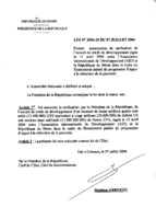 Loi n° 2004-13 du 6 juillet 2004 portant autorisation de ratification de l’accord de prêt signé le 12-01-04 entre la République du Bénin et le Fonds Africain de Développement (FAD) dans le cadre du financement partiel du projet de réaménagement et du bitumage de la route Djougou-N’Dali 6 juillet 2004 -