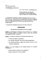Loi n° 2001-30 du 11 décembre portant détermination des indemnités parlementaires et autres avantages dus aux députés membres de l’Assemblée Nationale. 11 décembre 2001
