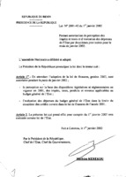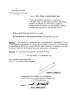 Loi n° 2001-42 du 1 janvier 2002 portant autorisation de perception des impôts et taxes et d’exécution des dépenses de l’Etat par douzièmes provisoires pour le mois de janvier 2002. 1 janvier 2002 -