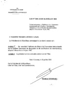 Loi n° 2001-26 du 9 août 2001 portant autorisation de ratification du Statut de Rome du 17 juillet 1998 portant création de la Cour pénale internationale. 9 août 2001 -