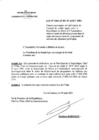 Loi n° 2001-25 du 9 août 2001 portant autorisation de ratification de l’accord de crédit signé entre la République du Bénin et l'Association internationale de développement dans le cadre du financement du programme de réforme des dépenses publiques 9 août 2001 -