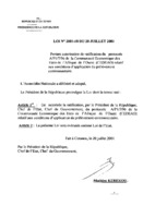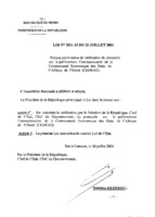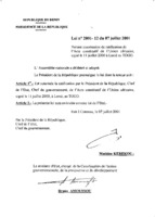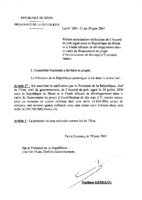 Loi n° 2001-12 du 7 juillet 2001 portant autorisation de ratification de l’Acte constitutif de l’Union Africaine signé le 11 juillet 2000 à Lomé au Togo. 7 juillet 2001 -