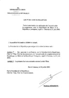 Loi n° 2001-13 du 13 juillet 2001 portant autorisation de ratification de l’accord de partenariat entre les membres du groupe des États d'Afrique, des Caraïbes et du pacifique d'une part et la Communauté Européenne et ses Etats membres d’autre part, signé à Cotonou le 23/06/2001. 13 juillet 2001 -