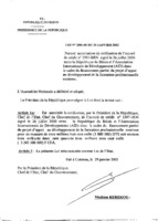 Loi n° 2001-02 du 29 janvier 2001 portant autorisation de ratification des accords de prêt signés le 24 mars 2000 entre la République du Bénin et le Fonds Africain de Développement (FAD) d’une part et le 27 avril 2000 entre la République du Bénin et la banque Arabe pour le Développement Economique en Afrique (BADEA) d’autre part, dans le cadre du financement du projet d’aménagement des massifs forestiers d’Agoua, des monts Kouffé et de Wari-Maro. 29 janvier 2001 -
