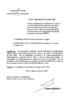 Loi n° 2001-05 du 26 avril 2001 portant autorisation de ratification de l’accord de crédit signé entre la République du Bénin et le Fonds International de Développement Agricole (FIDA) dans le cadre du financement partiel du programme de développement des plantes à racines et tubercules (PDRT). 26 avril 2001 -