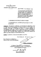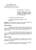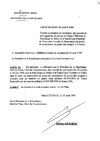 Loi n° 99-025 du 02 août 1999 portant autorisation de ratification des accords de prêt signés les 20 janvier et 18 juin 1998 entre la République du Bénin et la République Populaire de Chine dans le cadre du financement du projet de construction du palais des congrès à Cotonou 02/08/99 -
