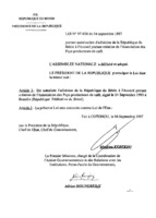 Loi N° 97-036 du 4 septembre 1997 portant autorisation de l’adhésion de la République du Bénin à l’accord portant création de l’Association des pays producteurs de café 4 septembre 1997 -