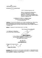Loi N° 97-033 du 28 août 1997 portant autorisation de ratification de l’accord de prêt signé le 07décembre 1996 entre la Banque arabe pour le développement économique et la République du Bénin relatif au financement du projet « aménagement de la vallée du Niger », périmètre de la Sota. 28 août 1997