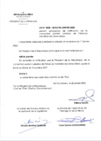 Loi N°2022-02 du 25 Janvier 2020 portant autorisation de ratification de la convention portant création de l’Alliance mondiale des terres arides 25 Janvier 2022 -