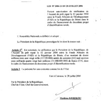 - Loi n° 2004-21 du 28 juillet 2004 portant autorisation de ratification de l’accord de prêt signé le 12 janvier 2004 entre le Fonds Africain de développement (FAD) et la République du Bénin dans le cadre du financement du deuxième projet d’électrification rurale.