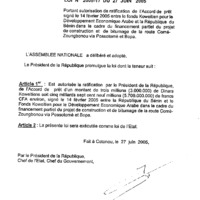 - Loi n° 2005-17 du 27 juin 2005 portant autorisation de ratification de l’accord de prêt signé le 14 février 2005 entre le fonds koweitien pour le développement économique arabe et la République du Bénin dans le cadre du financement partiel du projet de construction et de bitumage de la route Comè-Zoungbonou via Possotomè et Bopa