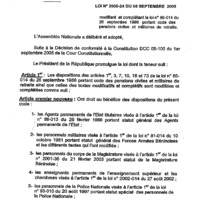 - Loi N° 2005-24 du 8 septembre 2005 Loi modifiant et complétant la loi n° 86 - 014 du 26 septembre 1986 portant code des pensions civiles et militaires de retraite.
