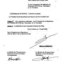 Loi N° 2005-27 du 10 août 2005 portant autorisation de ratification du protocole A/P3/1/03 sur l’éducation et la formation