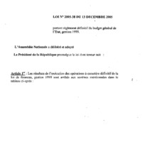 Loi N° 2005-38 du 13 décembre 2005 portant règlement définitif du budget général de l’Etat, gestion 1999.