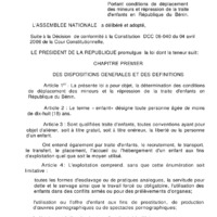 Loi N° 2006-04 du 10 avril 2006 portant conditions de déplacement des mineurs et répression de la traite d’enfants en République du Bénin.