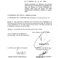 Loi N° 2006-08 du 31 mai 2006 Portant autorisation de ratification du protocole