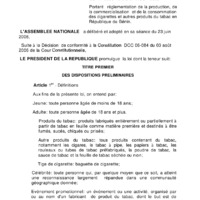 - Loi N° 2006-12 du 7 août 2006 portant réglementation de la production, de la commercialisation et de la consommation des cigarettes et autres produits du tabac en République du Bénin.