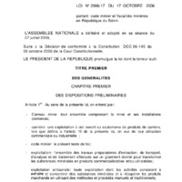 Loi N° 2006-17 du 17 octobre 2006 portant code minier et fiscalité minière en République du Bénin.