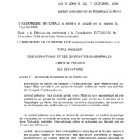 Loi N° 2006-18 du 17 octobre 2006 portant code pétrolier de la République du Bénin.