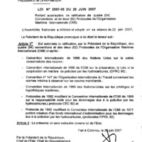 Loi N° 2007-06 du 26 juin 2007 portant autorisation de ratification de six (06) conventions de l’Organisation Maritime Internationale (OMI).