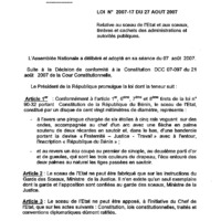Loi N° 2007-17 du 27 août 2007 relatif au sceau de l’Etat et aux sceaux, timbres et cachets des administrations et des autorités publiques.