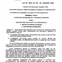 Loi N° 2007-33 du 02 janvier 2008 portant loi de finances, gestion 2008.