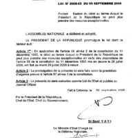 - Loi N° 2008-03 du 9 septembre 2008 fixant le délai au terme duquel le Président de la République ne peut plus prendre des mesures exceptionnelles