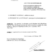 - Loi n° 99-011 du 05 février 1999 portant autorisation de ratification du traité d'interdiction complète des essais nucléaires signé par la République du Bénin, le 27 septembre 1996 à New-York