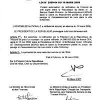 - Loi N° 2009-04 du 16 mars 2009 portant autorisation de ratification de l’accord de prêt signé le 13 mai 2008 entre la République du Bénin et la Banque Ouest Africaine de Développement (BOAD) dans le cadre du financement partiel du projet de pavage et d’assainissement de rues dans la ville d’Abomey.