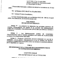 Loi N° 2009-17 du 13 août 2009 portant modalités de coopération intercommunale en République du Bénin.
