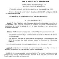 Loi N° 2009-18 du 15 juillet 2009 portant pension et autres avantages aux anciens Présidents de la République.