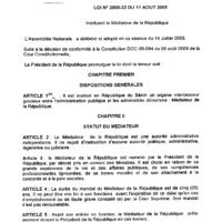 Loi N° 2009-22 du 11 août 2009 portant institution du médiateur de la République