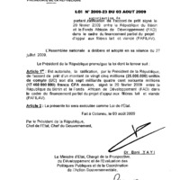 - Loi N° 2009-23 du 3 août 2009 portant autorisation de ratification de l’accord de prêt signé entre la République du Bénin et le Fonds Africain de Développement (FAD) dans le cadre du financement partiel du projet d’appui aux filières « Lait et Viande » .