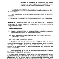 - Loi N° 2010-10 du 22 mars 2010 modifiant et complétant les dispositions des articles 93 et 146 de la loi n° 98-019 du 21 mars 2003 portant code de sécurité sociale en République du Bénin.