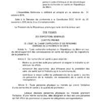 Loi N° 2010-40 du 08 décembre 2010 portant code d’éthique et de déontologie pour la recherche en santé en République du Bénin.