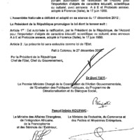 - Loi N° 2012-38 du 27 décembre 2012 portant autorisation de ratification de l'Accord pour l'importation d'objets de caractère éducatif, scientifique ou culturel, avec annexes A à E et Protocole annexe, adopté à Florence (Italie), le 17 juin 1950 .